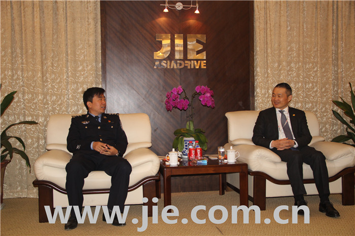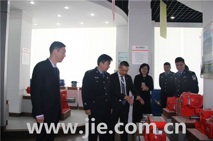 Mr.Fei Yuezhong, the Standing Committee of Xiaoshan District,the Director of the Xiaoshan Distric Public Security Bureau Branch,and his delegation visited JIE Drive for research and guide on December 6th,2017.Mr.Shen Yao, the secretary of the Party and Working Committee of Jingjiang Town accompanied.Mr.Chen Demu,the CEO of the JIE Drive,warmly welcomed Mr.Fei Yuezhong and his delegation to JIE and expressed his heartfelt gratitude to the District Commission and District Government for their long-term support.Mr.Chen reported the development of JIE and focused on the introduction of JIE Intelligent Drive Project.Mr.Fei Yuezhong fully affirmed the foresight and leadership of JIE Intelligent Drive Project and encouraged JIE to target Made in China 2025 strategy and become an intelligent factory demonstration in China's gear industry.
