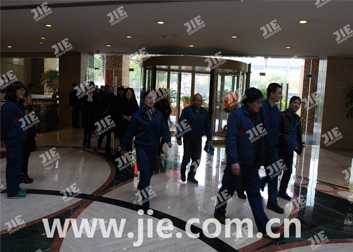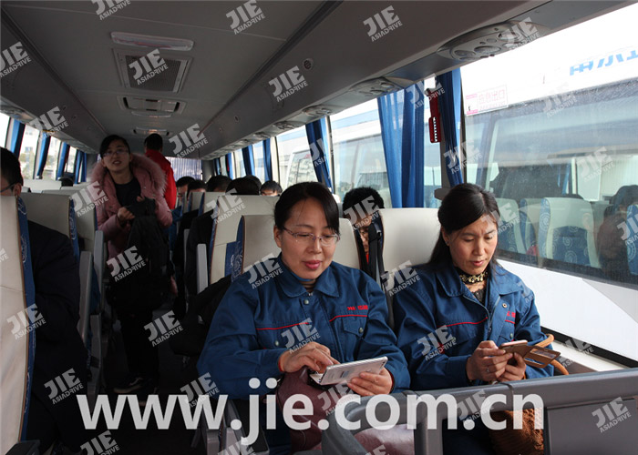12時(shí)30分,全體杰牌員工在公司集合,統(tǒng)一乘坐大巴出發(fā)前往金馬飯店。大家笑臉洋溢,神輕氣爽。